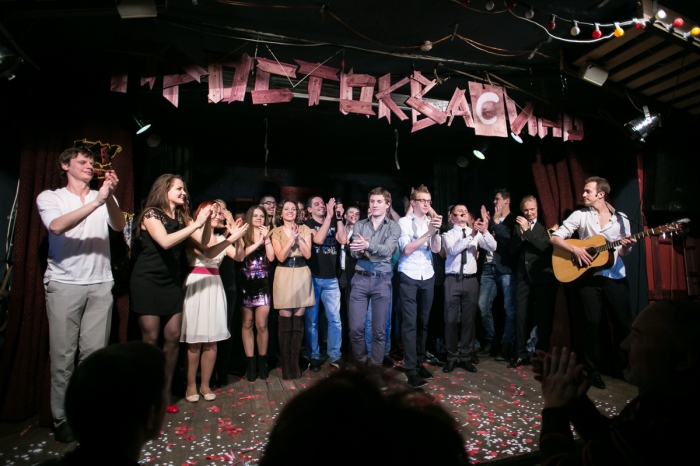 Взрыв эмоций случился на праздновании юбилея новосибирского театра-студии "Первый театр" в кабаре-кафе "Бродячая собака". За столиками собралась исключительно молодежь – ровесники актеров, плюс официальные лица – министр культуры Василий Кузин и замминистра - Виктор Буланкин. "Первый театр" смешил публику до колик, коллеги из дружественных театров смешили и публику, и юбиляров. Было тесно, весело, непринужденно, капустно.