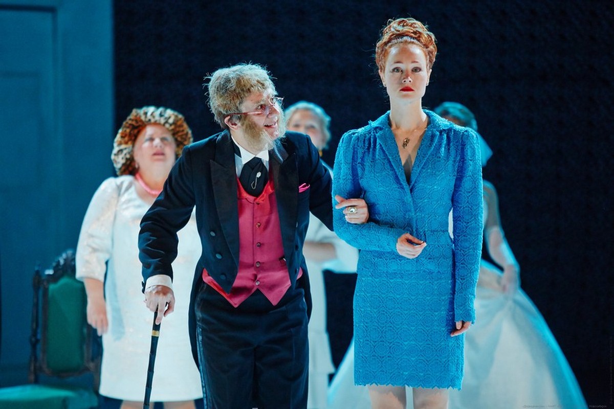 «Арабская ночь» 23 июня закроет сезон, а пока давайте перенесемся на большую сцену, на которой идет качественная, яркая, остроумная классика. Например, «Дядюшкин сон» по Достоевскому, где уездные тетки, каждая в меру собственной испорченности, доходящей до абсурда, устраивают образцово-показательные выступления в борьбе за богатого князя. Вскоре они объединяются в шайку против Марьи Александровны, но та ведет интригу со сватовством к дочери-бесприданнице изобретательно, артистично, виртуозно, как нерастраченная актриса, по которой плачет большая и малая сцены всех театров. Юная Зина – полная противоположность матушке. Оголенный нерв, натянутая струна, внешняя неприступность, внутренний пламень. Зина его со временем погасит – и примет законы общества. Правда, она обладает качествами, поднимающими ее над толпой. Например, чувством собственного достоинства. Ее финальный проход в эффектном синем костюме под руку со старикашкой-маразматиком прекрасен. Эта прямая осанка, эта высоко поднятая голова, этот холод во взгляде, ярко-красная помада на бескровном лице дорогого стоят.